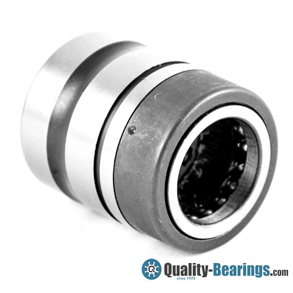 Needle thrust ball bearings have no inner ring and are therefore particularly space-saving radially. However, they assume that the raceway on the shaft is hardened and ground. Needle thrust bearings NX and NX..-Z have a full complement axial part and end caps. The NKX and NKX..-Z series have a ball and cage assembly with a sheet steel or plastic cage as the axial part. NKX..-Z also has a cover cap on the axial part. Needle thrust ball bearings are a combination of a radial needle bearing and a thrust ball bearing. We have these needle axial ball bearings available in two series. We supply all needle thrust ball bearings without an inner ring. For installation cases where the shaft cannot be hardened and ground, inner rings are available for the radial needle roller bearings, which must be ordered separately. The outer ring has a lubricating groove and lubricating holes for lubrication. NX and NKX are lubricated with oil. The top cap on NX has lubrication holes. NX..-Z and NKX..-Z are lubricated with grease. The axial part is greased with a lithium complex soap grease according to GA08. The top caps have no lubrication holes. Needle Thrust Ball Bearings are suitable for accommodating radial loads and unidirectional axial loads. To support short shafts, where changes in length due to temperature are excluded during operation, two bearings can also be used, which are arranged mirror-inverted to each other. In such cases, it is advisable to elastically preload the axial bearing parts using disk springs. The elastic preload serves to ensure slip-free and low-noise operation of the unloaded axial bearing part. The elastic preload also improves the operating behavior of the axial ball bearings and minimizes running noise. Combined needle roller bearings are units consisting of radial needle roller bearings with an axially loadable roller bearing part.